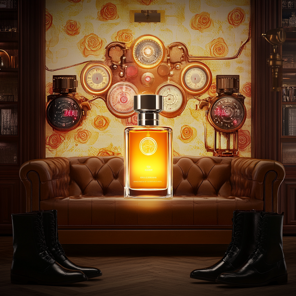 Entführt Sie auf eine nostalgische Reise durch vergangene Epochen, inspiriert von der Wärme eines braunen Ledersofas und der Eleganz verblasster Rosenmuster. Dieser Duft vereint die fruchtige Leichtigkeit von warmen Gelb- und Orangetönen mit der Tiefe von weichen Rosa- und Brauntönen. Perfekt für eine einladende Lobby, bietet ein charmantes und einzigartiges Dufterlebnis, das Eleganz und Zugänglichkeit mit einem Hauch von Abenteuer und Stil verbindet.